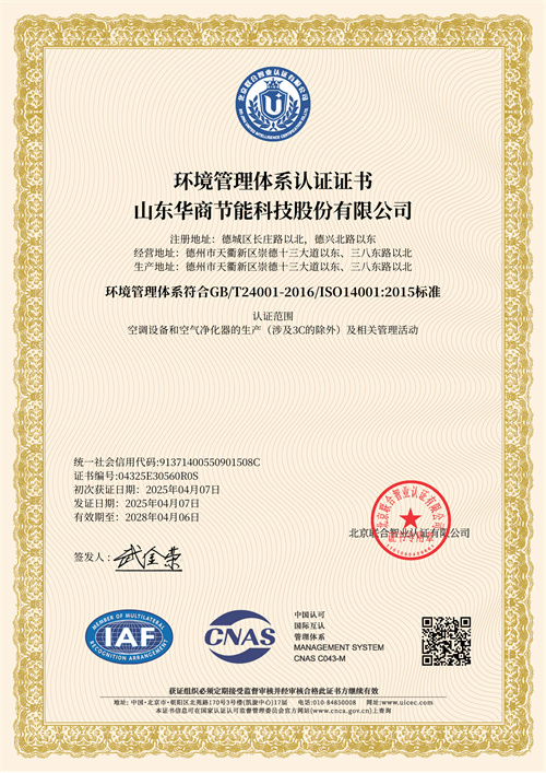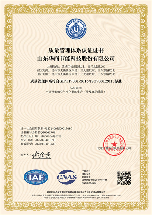 山東華商節(jié)能科技股份有限公司———原德州大商凈化空調設備有限公司———